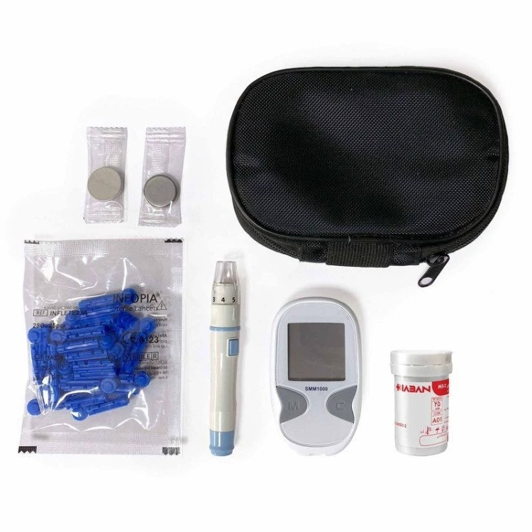 -محتوای بسته شامل کیت دستگاه، 50 عدد نوار تست، تفنگ مخصوص سوزن، 25 عدد سوزن (گِیج28)، 2باتری، کیف حمل، دفترچه راهنما و کارت گارانتی مادامالعمر 🫡 .