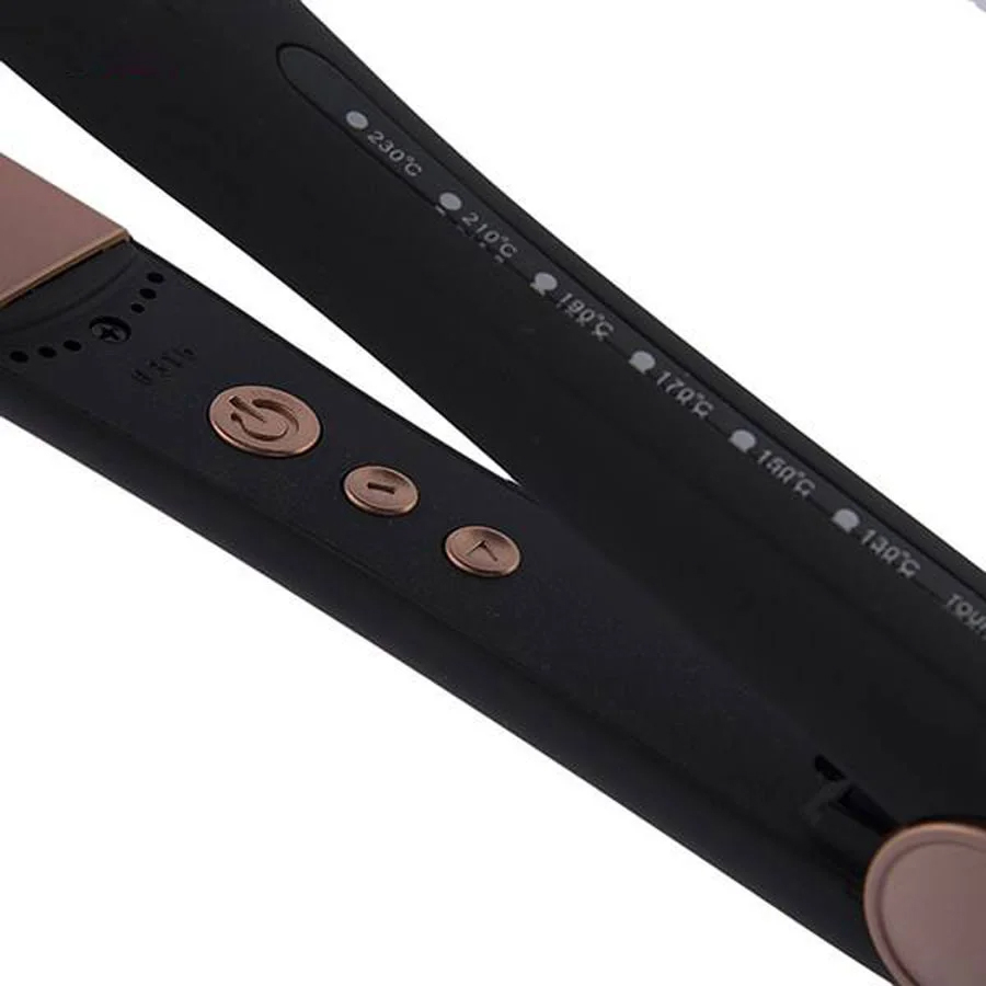 · گرمایش سریع و سیستم تنظیم دقیق دما: المنت باکیفیت ۵۵ واتی، باعث گرم شدن صفحات در کمتر از ۳۰ ثانیه میشود . سیستم کنترل دما با قابلیت تنظیم دقیق حرارت از ۱۳۰ تا ۲۳۰ درجه سانتیگراد (دارای ۶ سطح دمایی) ، به شما امکان میدهد دمای متناسب با جنس موی خود (لطیف، معمولی یا ضخیم و فر) را انتخاب کنید. نمایشگر LED روی بدنه، دمای تنظیم شده را به وضوح نشان میدهد .