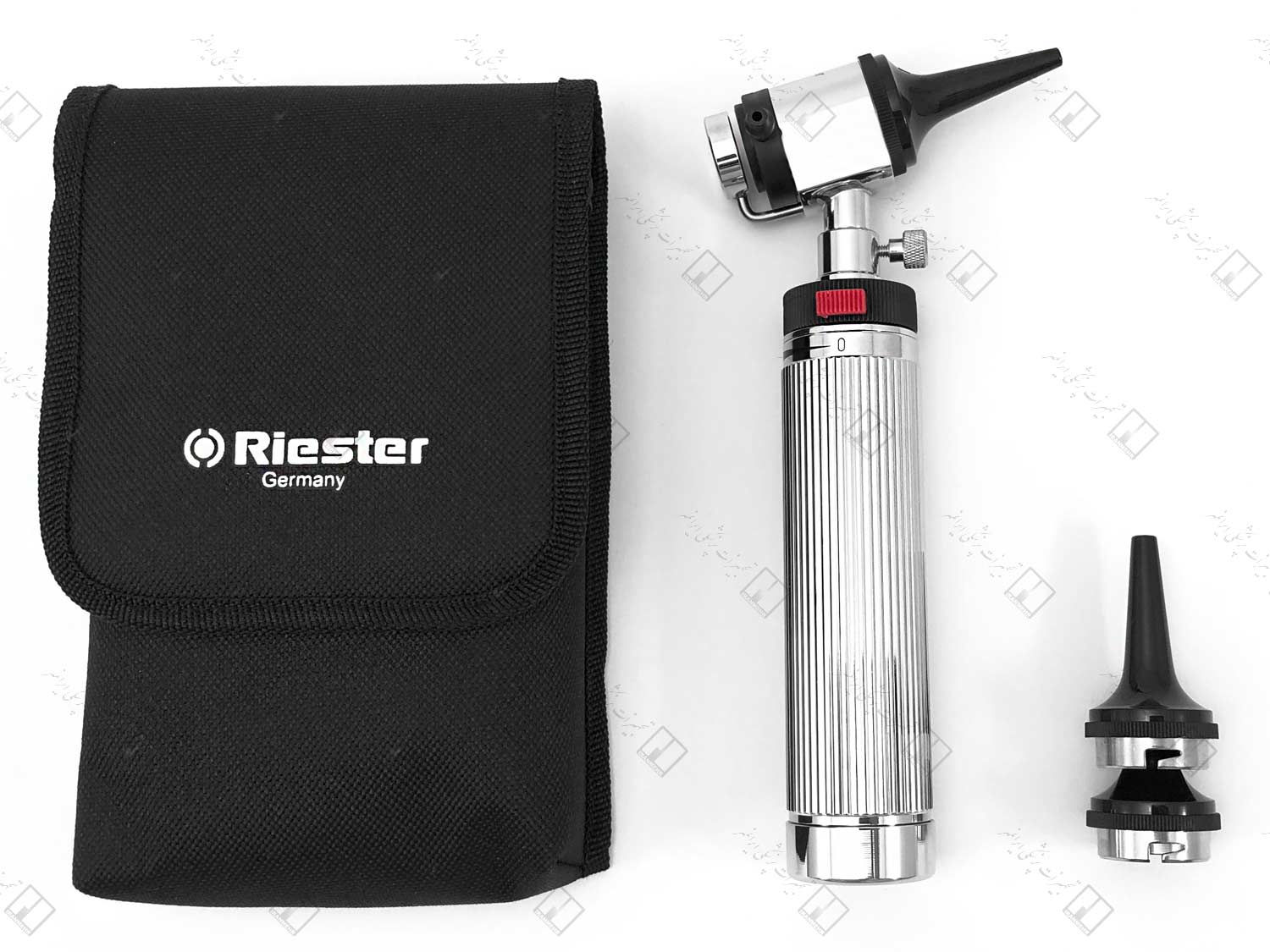 پک اصلی شامل: هندل فلزی ریستر، سر اتوسکوپ با لنز ۴ برابر و محل نور هالوژن (فاقد باتری)، مجموعه اسپکولوم قابل استریل در سایزهای ۲، ۳ و ۴ میلیمتر، کیف نگهداری، دفترچه راهنما و گارانتی معتبر شرکتی میباشد.