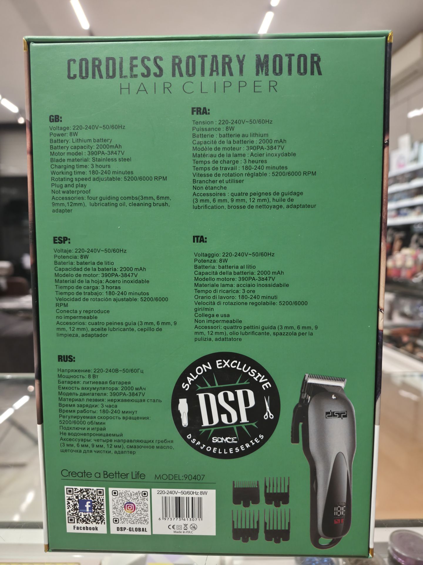 اقلام همراه: ۴ شانه، آداپتور، برس تمیز کننده، روغن تیغه