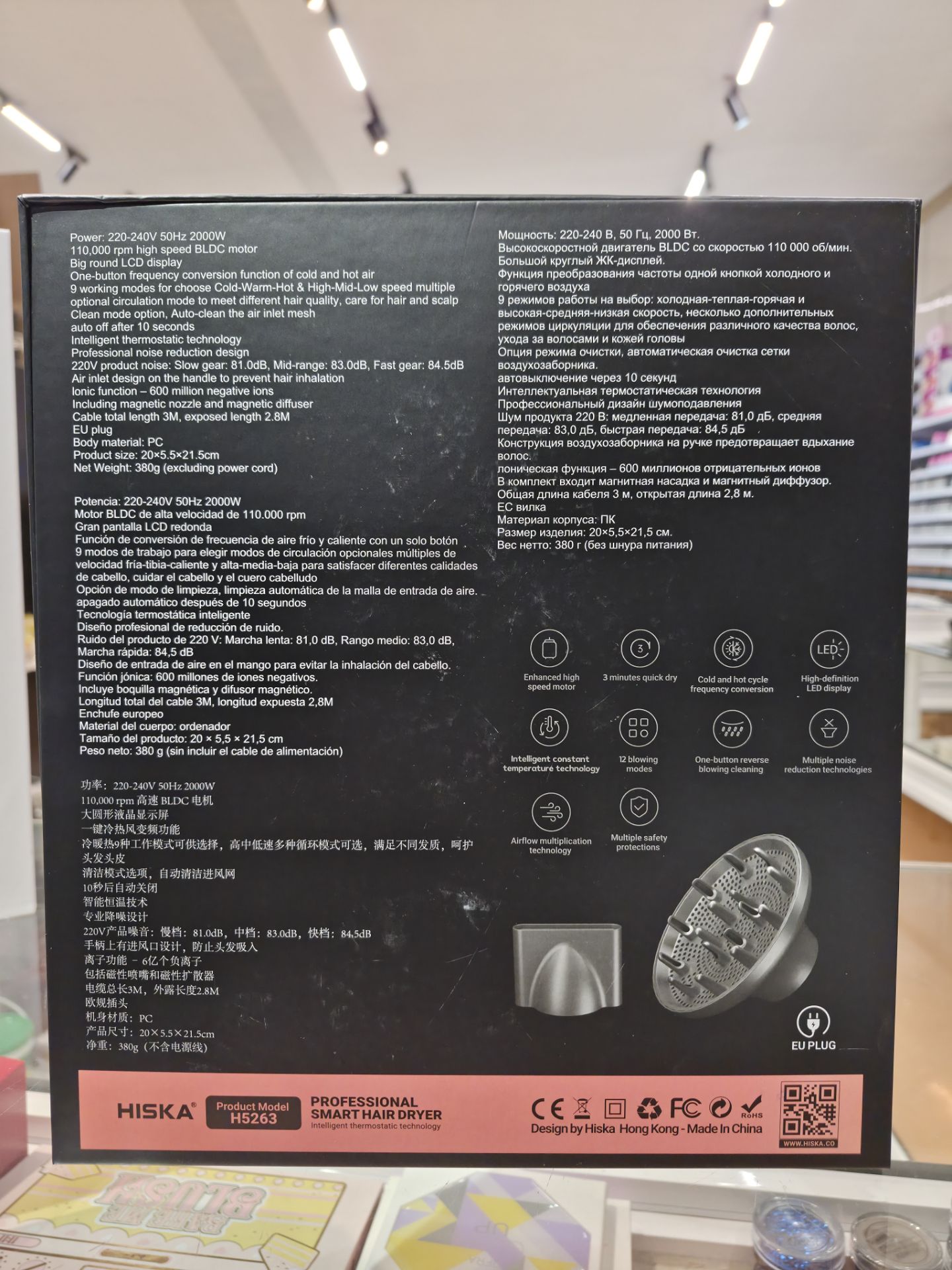 ✓ معرفی کلی: سشوار هوشمند BLDC هیسکا مدل H5263، نسل جدید سشوارهای بازار با طراحی مدرن و رنگ نقرهای است. این سشوار چندمنظوره با قابلیت خشککردن سریع و حفاظت از سلامت موها، هم برای مصارف خانگی و هم سالنی ایدهآل است.