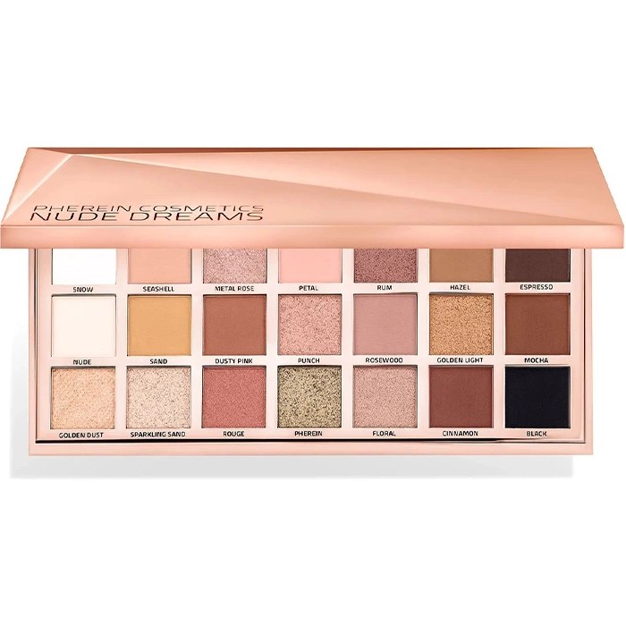 ✓معرفی کلی: پالت سایه Pherin Cosmetics مدل Nude Dreams، محصولی از کشور آمریکا، با ارائهی ۲۱ رنگ متنوع در طیفهای گرم، نود و صورتی، انتخابی فوقالعاده برای خلق انواع آرایشهای چشم، از ملایم روزانه تا مجلسی و حرفهای است. این پالت با فرمولاسیون ویژه خود، ترکیبی از رنگهای مات و شاین با پیگمنت بالا و بافت نرم را ارائه میدهد که استفاده آسان و ماندگاری طولانی را تضمین میکند.