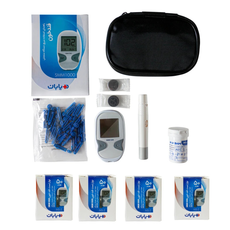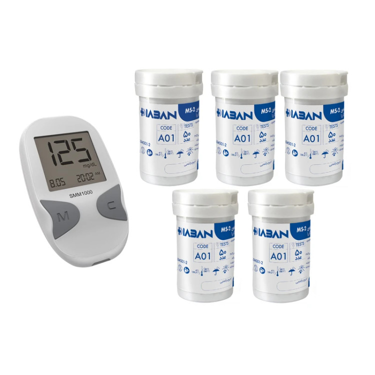 پک دستگاه تست قندخون دیابان با 5 بسته نوار 50تایی