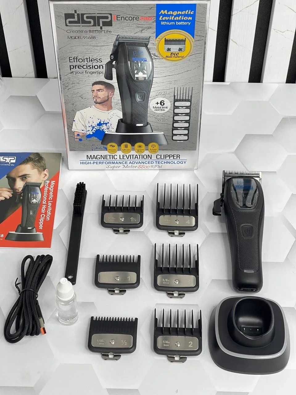 تجهیزات همراه: کابل شارژ تایپ c_ روغن تیغه _ برس تمیزکاری، ۶ سری، پایه نگهدارنده.
