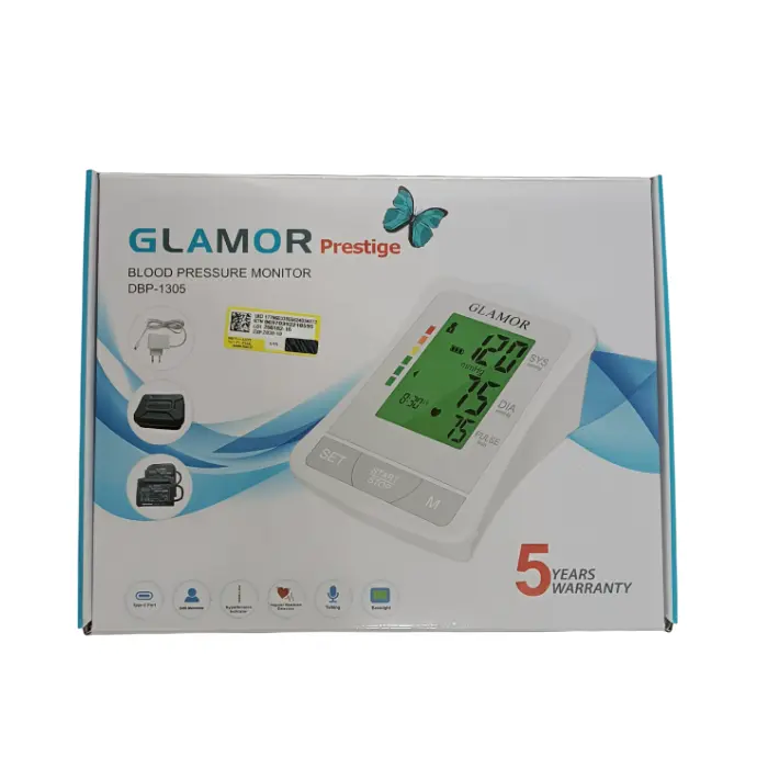 فشارسنج دیجیتال بازویی گلامور مدل DBP-1305، دستگاهی دقیق و کاربرپسند است که برای اندازهگیری فشار خون در منزل طراحی شده است. این مدل با قابلیت سخنگوی فارسی و انگلیسی و نمایشگر بزرگ LCD، استفاده را برای افراد سالمند یا کسانی که دید ضعیف دارند، بسیار آسان میکند. سیستم هوشمند این دستگاه بهصورت خودکار فشار خون سیستولیک، دیاستولیک و ضربان قلب را ثبت کرده و میانگین نتایج چند اندازهگیری اخیر را نمایش میدهد.