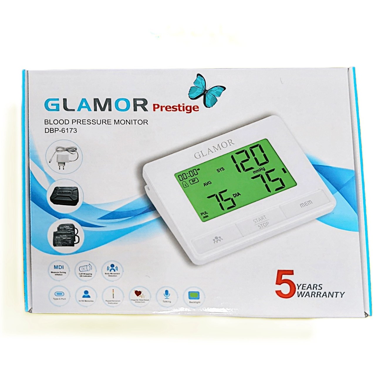 فشارسنج دیجیتال سخنگو گلامور مدل DBP-6179، محصولی پیشرفته از برند معتبر گلامور آلمان، با قابلیت اندازهگیری دقیق فشار خون سیستولیک، دیاستولیک و ضربان قلب طراحی شده است. این دستگاه با استفاده از تکنولوژی اسیلومتریک و با دقت بالا، که توسط تأییدیههای بالینی و EU MDR نیز پشتیبانی میشود، اطمینان و صحت نتایج را برای کاربران تضمین میکند. این مدل با قابلیت سخنگو به زبان فارسی و انگلیسی، و همچنین نمایشگر LCD با نور پسزمینه متغیر، تجربه کاربری آسان و دقیقی را فراهم میآورد.