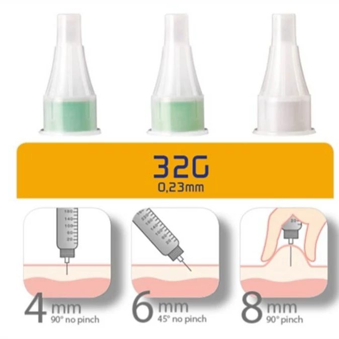 ✓محصول مشترک آمریکا و ایرلند 🇺🇸🇨🇮 ✓ دارای تاییدیه اتحادیه اروپا (CE) 🇪🇺 ✓ گیج و شماره چیه؟! *گِیج (Gauge) همون ضخامت سرسوزن هست. هرچقدر عدد گیج بالاتر باشه، ضخامت سوزن کمتر هست و بخاطر همین موضوع درد کمتری داره. مثلا سرسوزن انسولین با گیج 33 درد کمتری نسبت به گیج31 داره چون ضخامت اولی 0.20 میلی متر و دومی 0.25 هست. *شماره (Length) هم نشون دهنده طول سرسوزن هست. بنابراین هرقدر شماره بالاتر باشه، طول سوزن بیشتر هست و بیشتر هم داخل پوست فرو میره (روش تزریق هر شماره هم فرق میکنه). ✓ آخرین تکنولوژی گیج 34 با شماره 3.5 هست. میکروفاین گیج 31 با شماره6 هست.