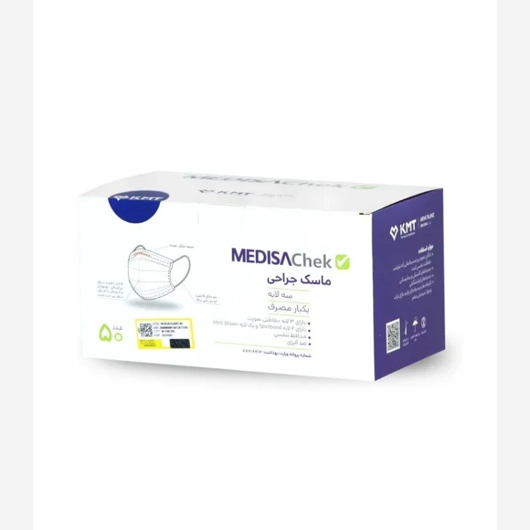 دارای 3 لایه حفاظتی صورت دارای 2 لایه Spunbond و یک لایه Melt Blown محافظ تنفسی ضد آلرژی بسته 50 عددی ساخت کشور ایران
