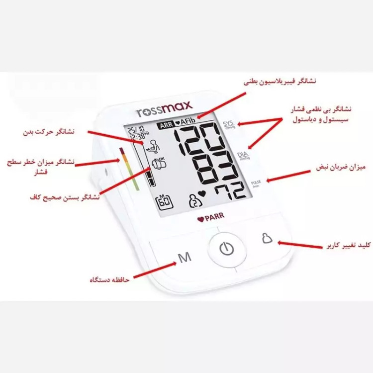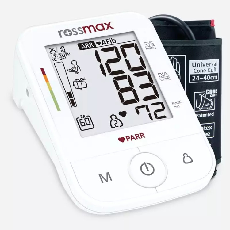 X5 "PARR" Automatic Blood Pressure Monitor از محصولات برند مشهور رزمکس (Rossmax) هست که ساخت کشور سوئیس بوده و مطابق با استانداردهای معتبر بینالمللی طراحی شده. بهخصوص برای کاربرد خانگی، کلینیکی و مراقبتهای قلبی.